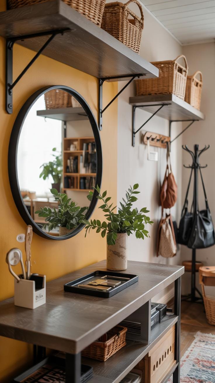Shelves add both storage and a decorative touch. Use them for keys, sunglasses, small plants, or mail. Keep shelves at a comfortable height to reach easily and avoid overcrowding them with too many items.