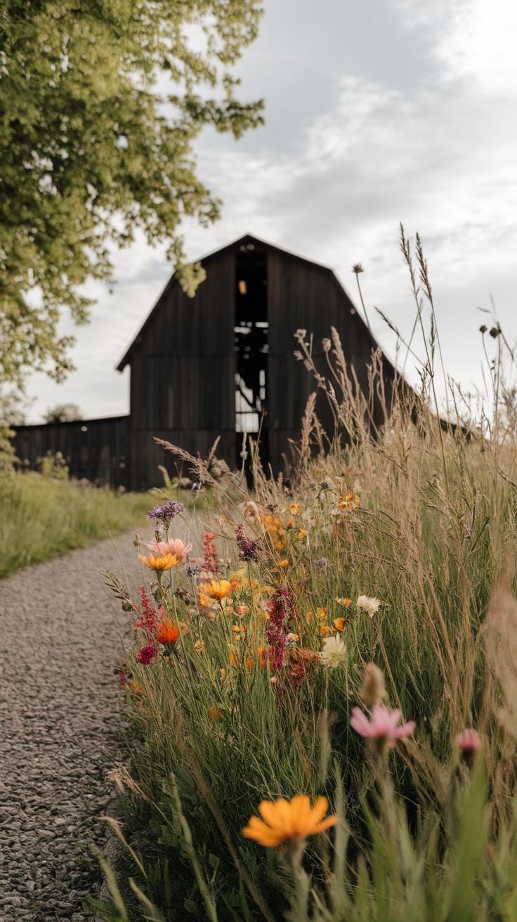 Think about how your plants change with the seasons. Will your garden look worth enjoying year-round? Consider adding trees that provide shade and structure without overwhelming the barn’s profile.
