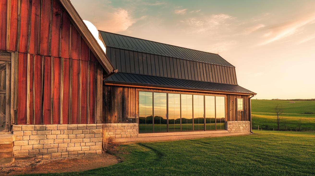 Your choice of materials shapes the balance between traditional barn charm and modern home performance. Selecting wood, metal, glass, and stone thoughtfully lets you keep barn textures while meeting today’s standards for durability and insulation.