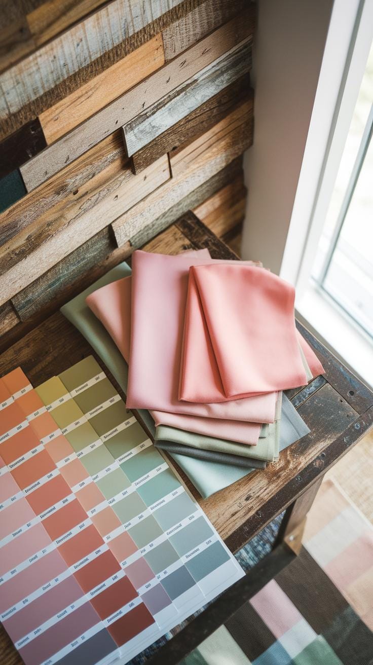 Muted greens in plants or decorative pieces connect indoor spaces to nature. Dusty rose or faded mustard accents work well in vintage-inspired linens or small décor items. These tones add charm without breaking the calm feel that defines rustic chic spaces.