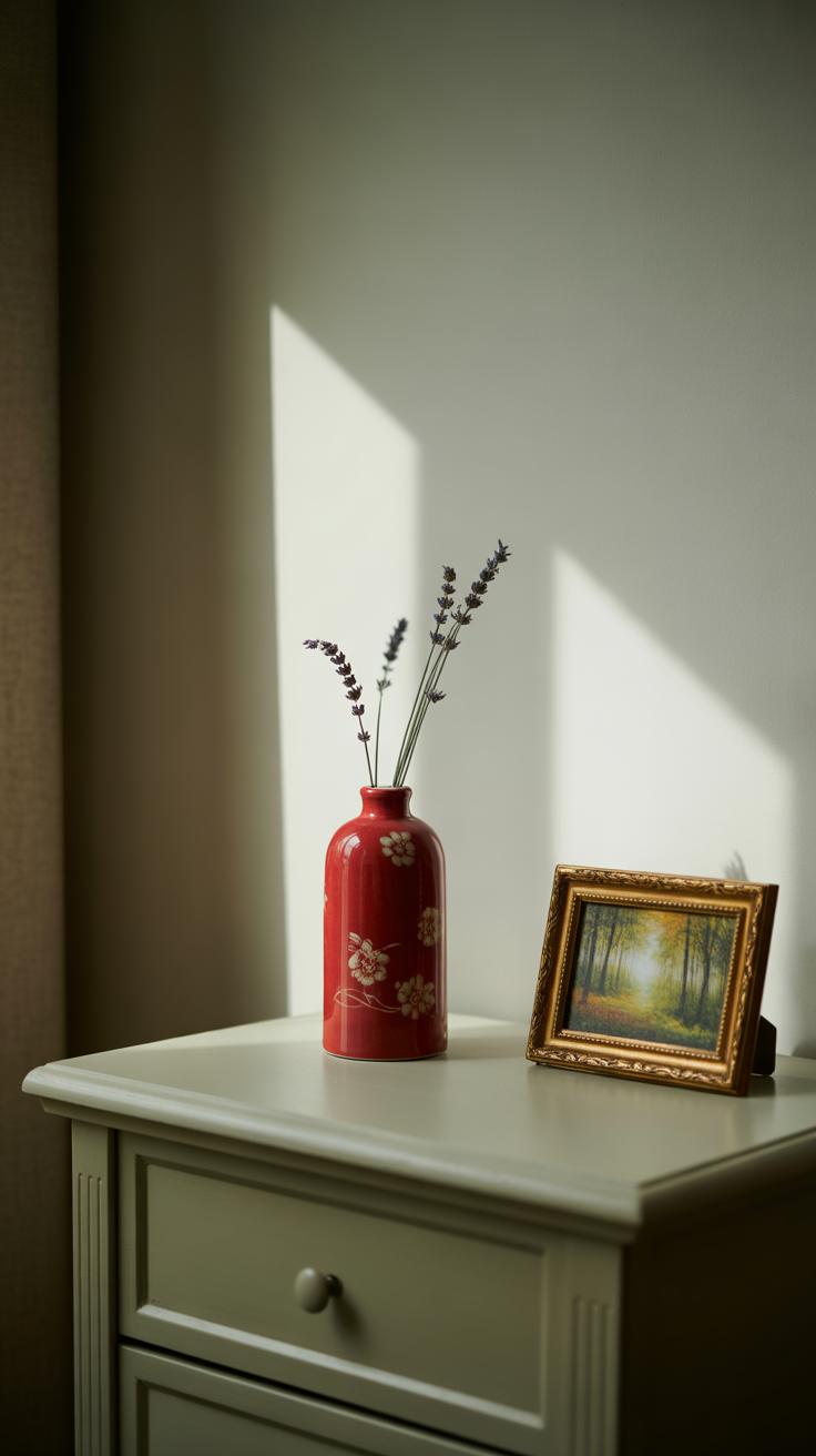 When it comes to decorations, try mixing in smaller red elements like ceramic vases, cushions, or candle holders. These touches add personality without overwhelming the space. I’ve noticed that even a single red object on a nightstand or dresser can make the room feel cozier, almost like it has a heartbeat.