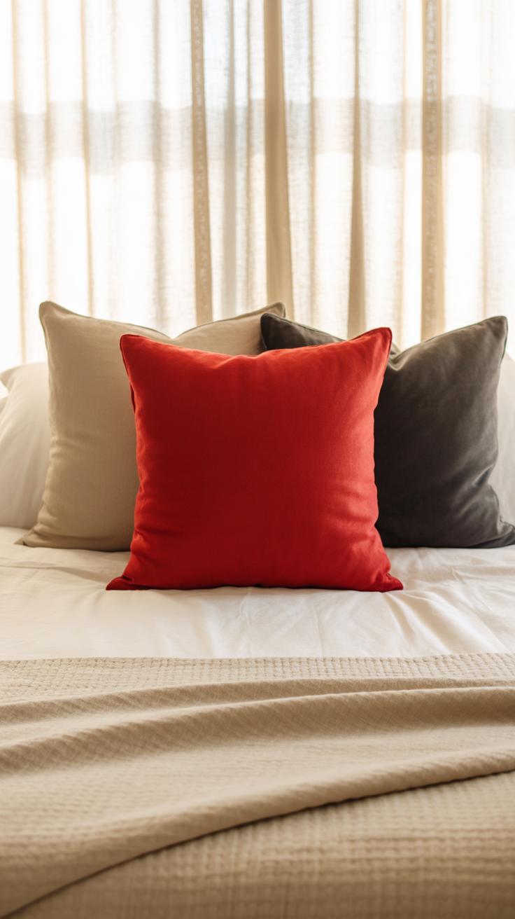 Red doesn’t have to dominate your bedroom to make a statement. In fact, using it as an accent color can be a smarter way to add warmth without feeling overwhelmed. Imagine a neutral room with just a few pops of red here and there—it can feel both cozy and balanced.
