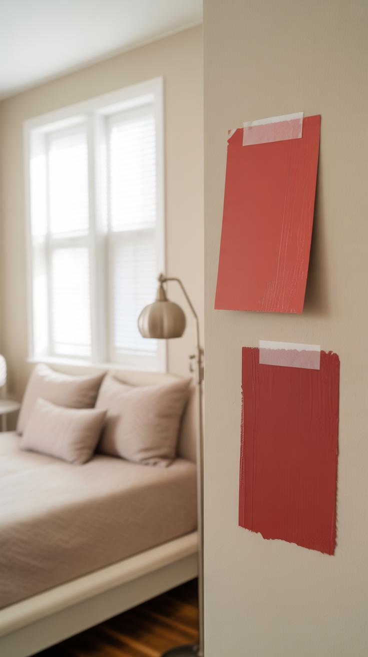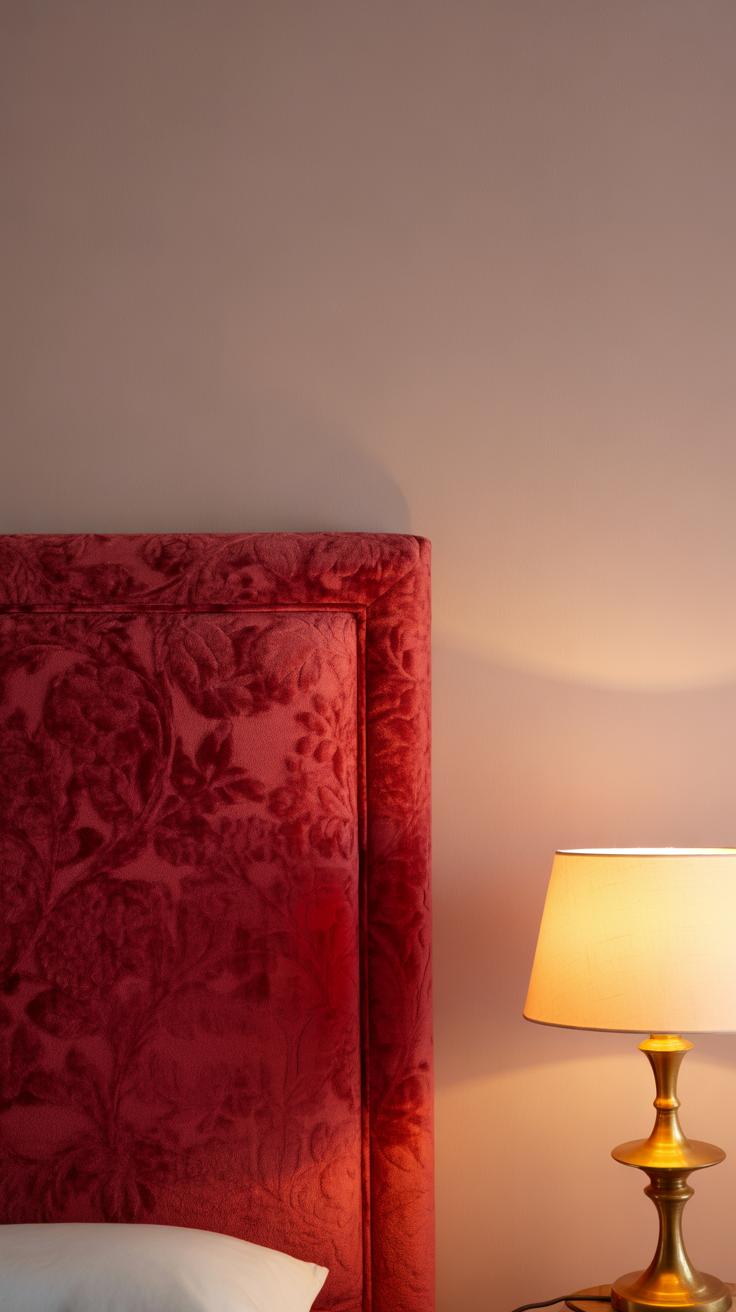 Think about how soft reds bring a subtle glow that doesn’t push you out of relaxation mode. These tones blend easily with neutral bedding or wood finishes, making them easier to live with long-term. If you’re hesitant about red but want a trace of its charm, these softer versions could be your best pick.
