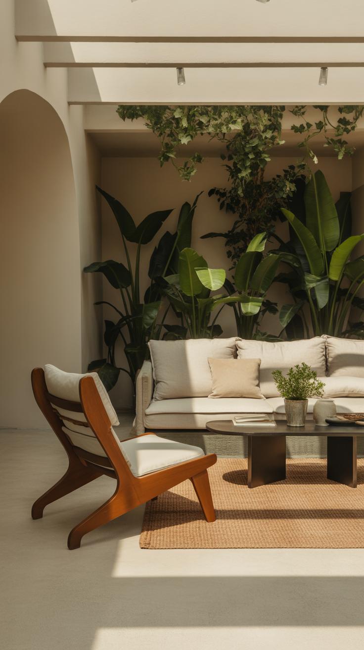 If you’ve got a corner that seems bare, try a woven basket or rattan lampshade to introduce warmth and tactile appeal. These materials don’t scream for attention but instead complement your plants and textiles, making the entire space feel woven together in a casual, effortless way.