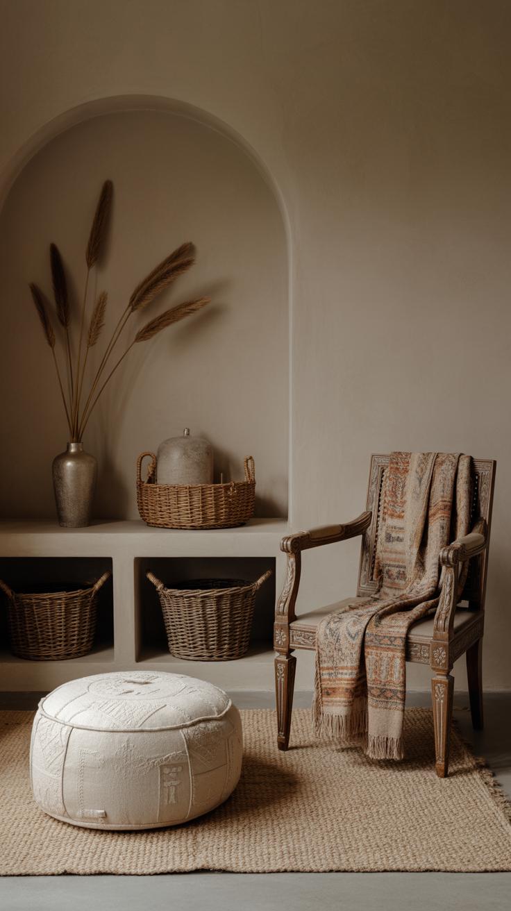Bohemian style nearly demands natural materials. Wicker and rattan furniture pieces add texture and softness without feeling heavy, but they can also bring a slightly vintage or handmade impression. Stone accents—like a rough-hewn coffee table or stone candle holders—offer an earthy contrast, grounding the room a bit when all the textures start to feel a little too busy.