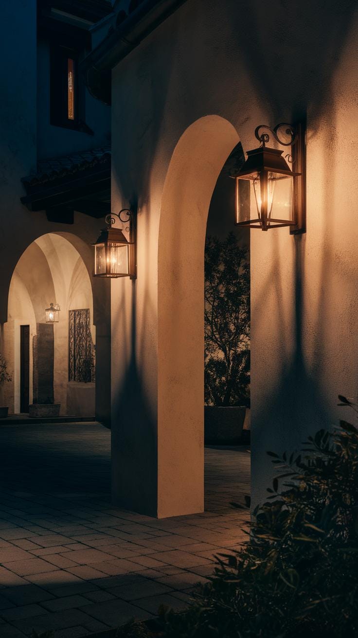 Entrances gain both function and style through well-placed lanterns or wall sconces that echo Mediterranean design. These lights help guests feel invited and safe as they approach your door.