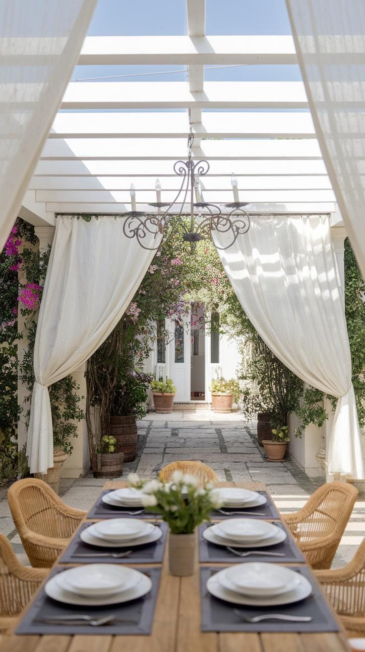 Select furniture built to withstand outdoor conditions, like wrought iron or treated wood, but make sure it feels inviting. Add cushions with bold patterns inspired by Mediterranean fabrics to boost comfort and style. Shade options matter—install pergolas, retractable awnings, or use large umbrellas to protect from harsh sun without blocking airflow.