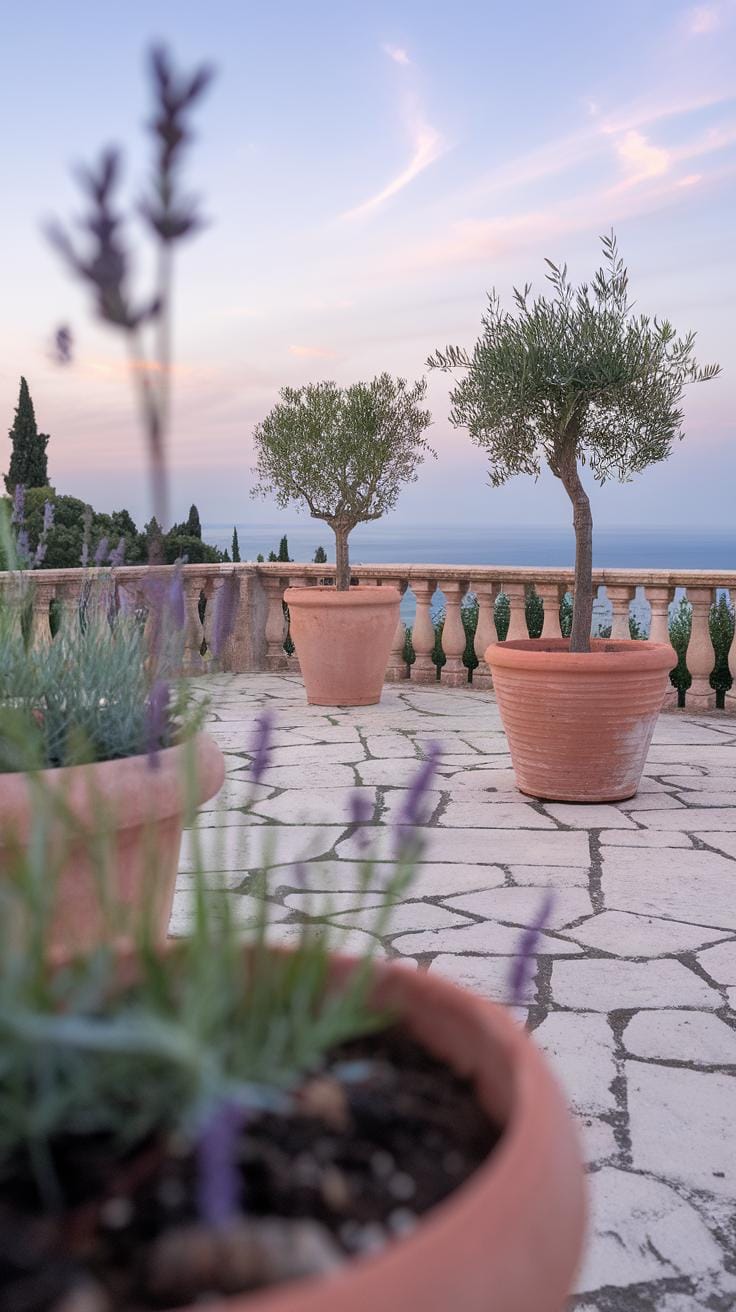 Olive trees stand out for their silvery leaves and ability to thrive in hot, dry soil. They require little water once established and minimal pruning. Lavender offers purple blooms and a pleasant scent. It prefers full sun and well-drained soil. Rosemary suits your garden if you want a herb that is both decorative and useful.