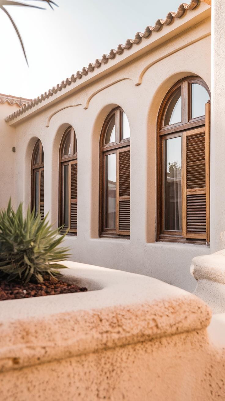 Wrought iron balconies and grills also add personality and security to these homes. Their intricate craftsmanship complements the arches and often serves as a focal point. Ironwork can welcome your creativity—choose simple designs for a modest look or detailed patterns for elegance. Would your outdoor spaces benefit from these details that add charm and function? Incorporating painted or rust-finished iron pieces offers both protection and a Mediterranean vibe.