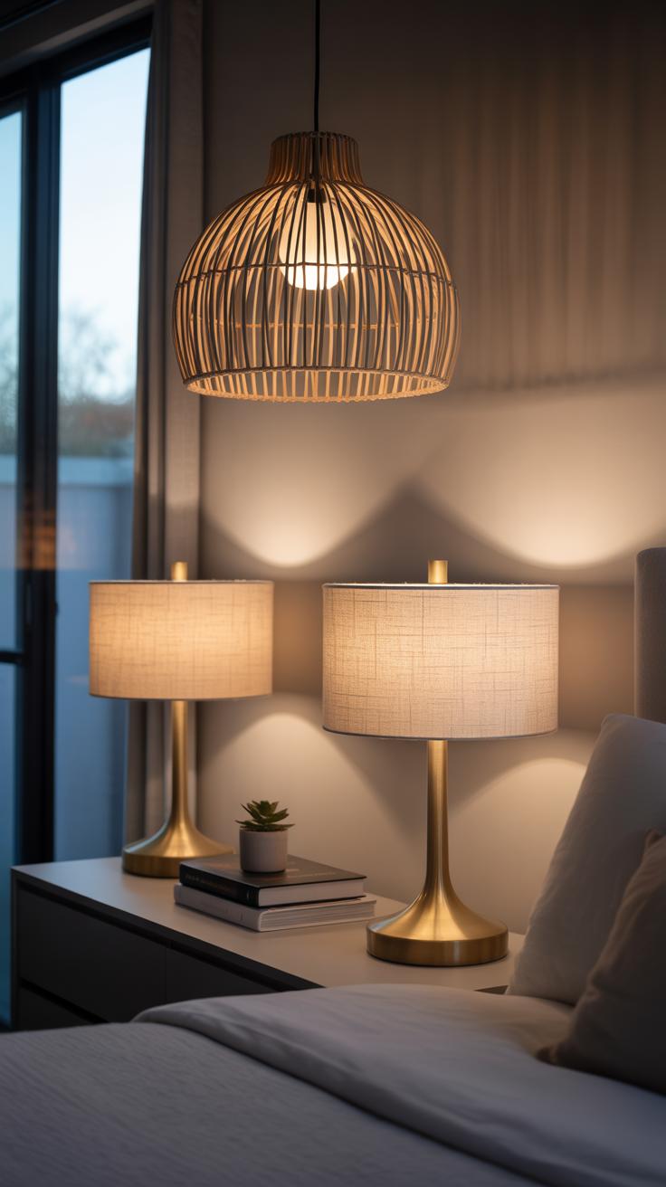 Lamps and wall sconces offer a lot of flexibility in creating soft light layers. For example, table lamps on nightstands bring pools of warmth right where you need them most, without flooding the entire room. Shades made from natural materials like linen or silk filter light softly—you’ll notice how shadows stretch and soften around the room.