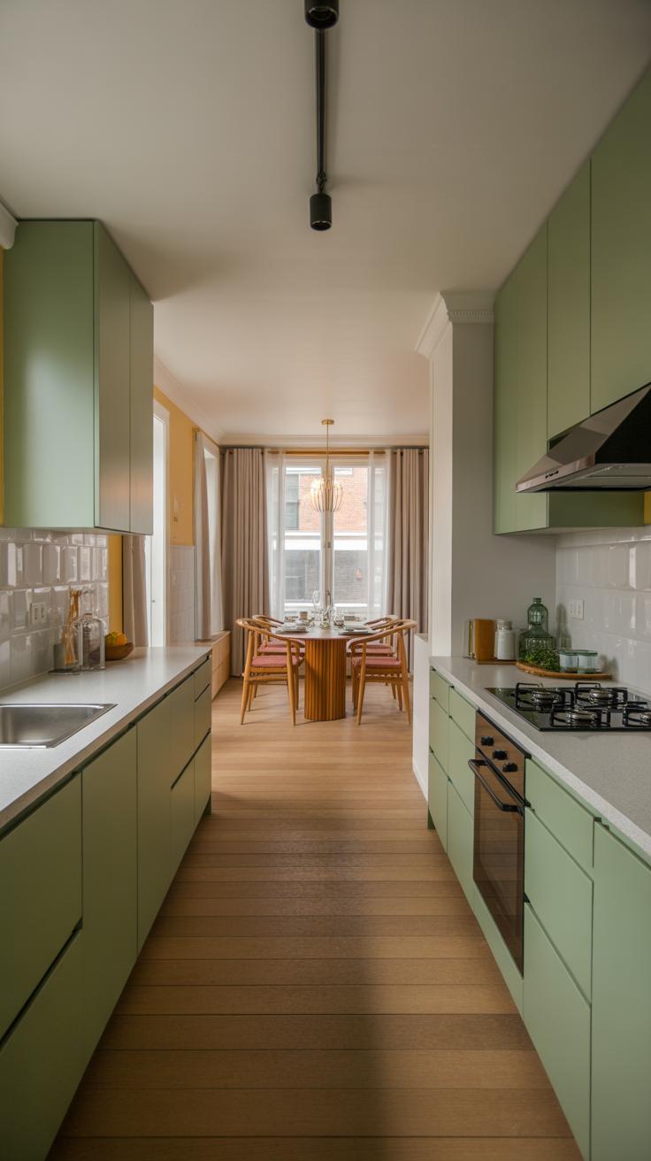 The galley layout feels almost old-fashioned but in a good way. Think of two parallel counters with a walkway in between. Despite looking narrow, it’s surprisingly efficient for prepping and cooking without distractions. Classic kitchens often use this layout when space is limited but functionality can’t be compromised. It’s not for everyone, though. Some might find it a bit confining.