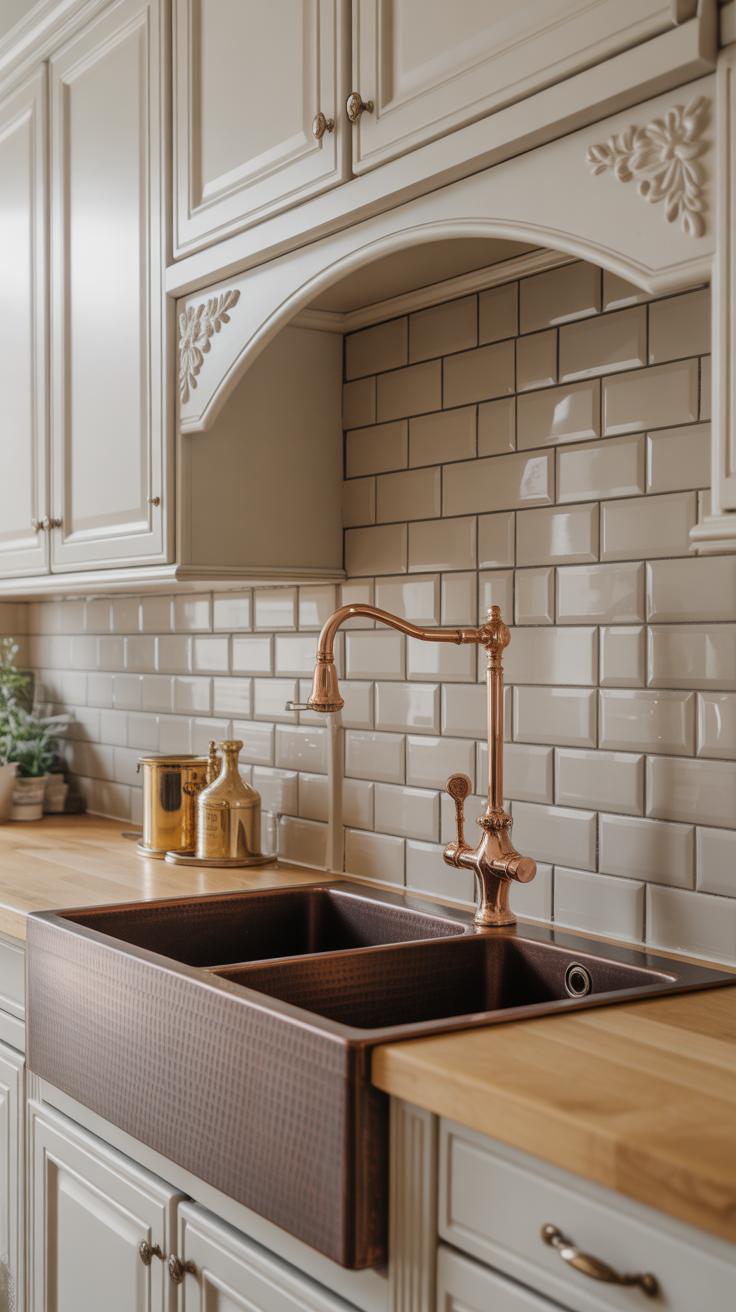 To keep things from looking flat, adding accents is helpful—but they should be subtle. A dusty green, soft mustard, or even a muted terracotta can add personality without overwhelming the timeless feel. Imagine a pale green backsplash tile set against cream cabinets, or brass hardware with a hint of warmth.