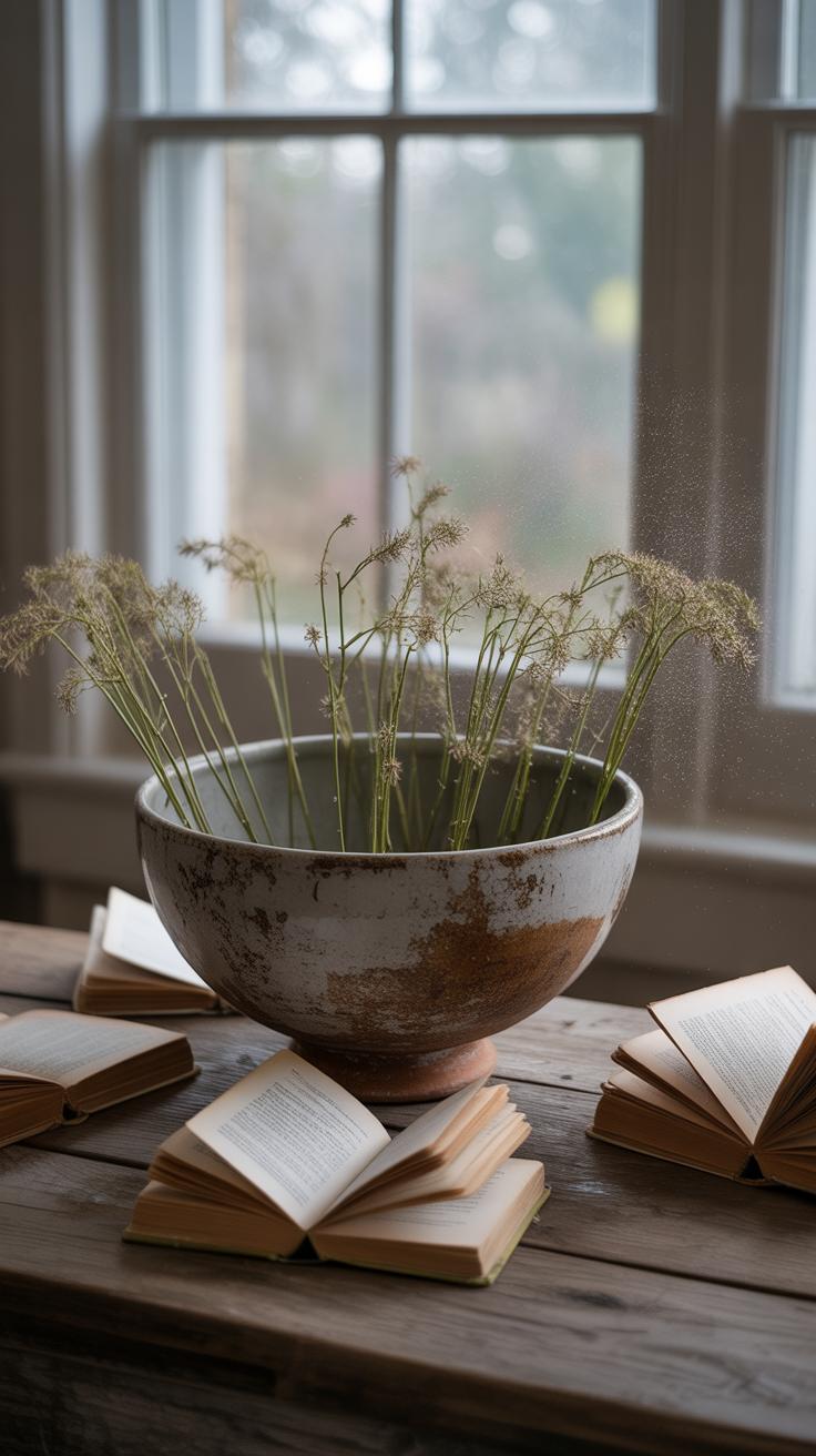 This one’s quick and versatile. Grab a tray or a shallow bowl—wood, metal, or glass. Now, fill it with candles, stones, pinecones, or small objects you find interesting or meaningful. Some people like to gather shells from a recent trip or smooth river rocks for a little tactile appeal. Others fill the space with seasonal items like acorns or dried fruit.