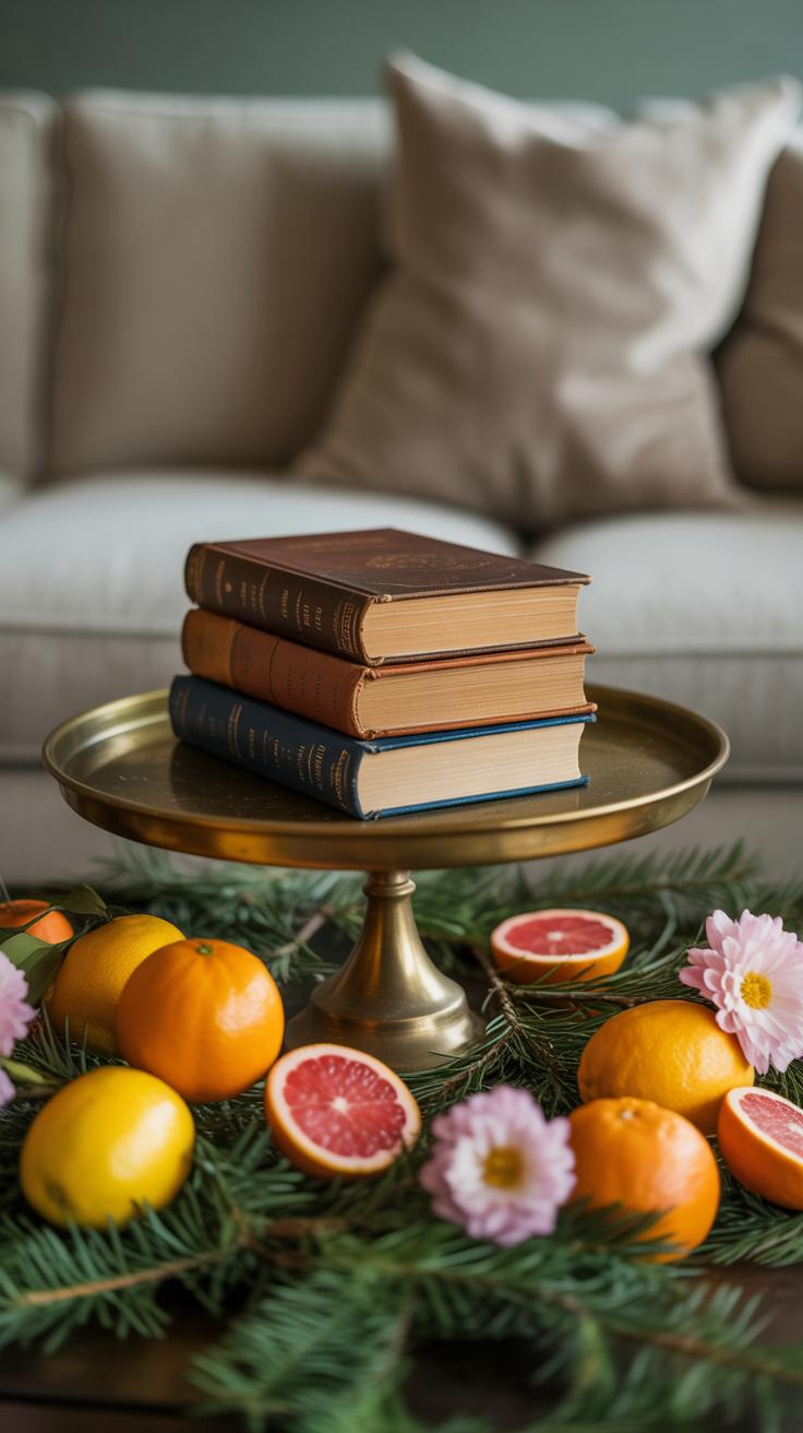 Think about what colors feel appropriate for each season. Spring often calls for lighter, fresh tones, while summer can tolerate brighter, bolder hues. In fall, earthy shades like rust or mustard work well, and winter tends toward deeper, cozy colors. You could replace a stack of books with a seasonal one or switch a glass bowl filled with seashells to one holding cranberries or ornaments.
