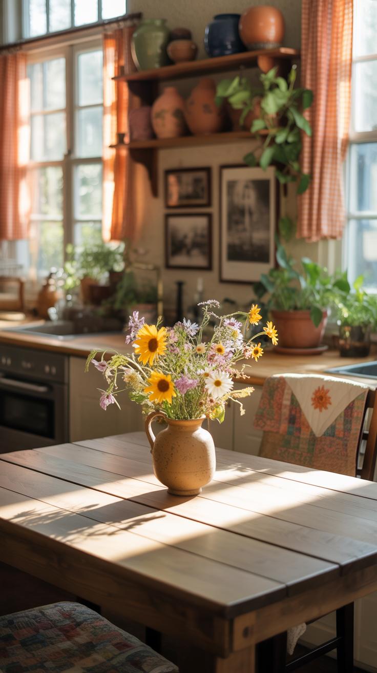 Other decor might include pottery, woven baskets, and open shelving to show favorite dishes or old cookbooks. It’s about functionality but also charm—you might find a hand-stitched cushion or a family heirloom on display. These pieces make a house feel personalized, not staged.