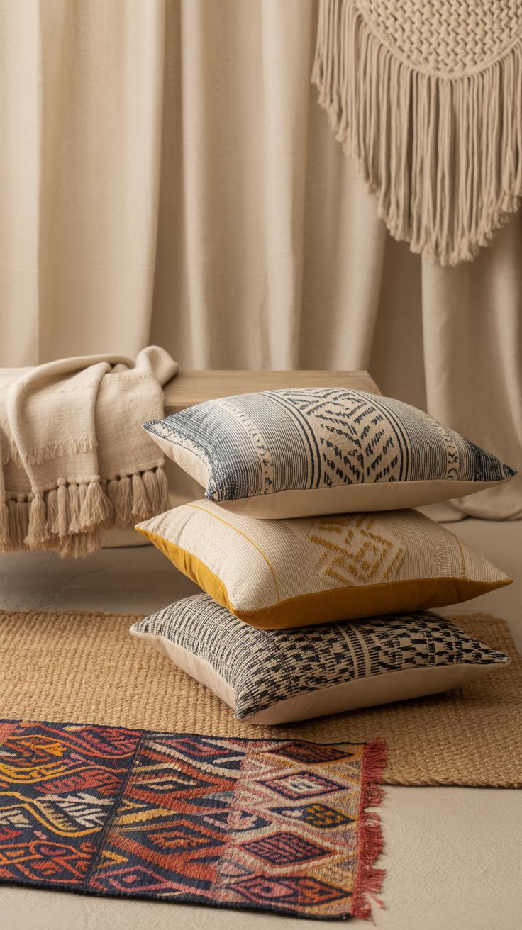 Textiles play a huge part in making a boho living room feel cozy and inviting. Think about layering rugs, cushions, and throws with various patterns and colors—it instantly softens the space and adds visual interest. You might start with a neutral base rug and then place a smaller, patterned one on top. The contrast between textures and designs creates a kind of casual warmth that’s hard to achieve otherwise.