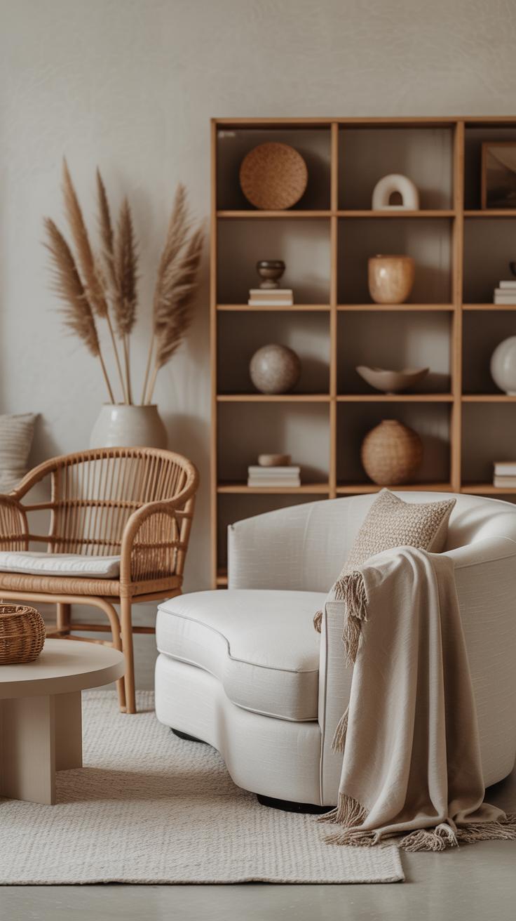 When it comes to storage, think natural and tactile. Woven baskets, rattan trunks, or linen-lined boxes work great. They hold magazines, throws, or kids’ toys, while blending right in. Open shelving can help—if you arrange things thoughtfully, with some room to breathe, it won’t feel overwhelming. Avoid cramming everything in; an overcrowded shelf quickly kills the relaxed mood.