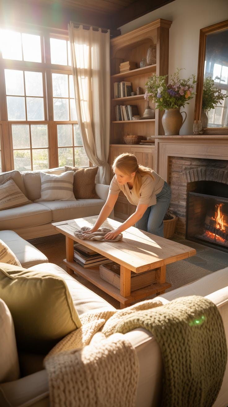 Farmhouse living rooms often feature wood floors, beams, or furniture that need more than just surface cleaning. Regularly checking for scratches and marks can save bigger renovation efforts later. For wood, a simple rule: avoid harsh chemicals. Instead, use gentle wood cleaners or a mixture of mild soap and water, but don’t soak wood surfaces. Wiping immediately dry helps prevent warping or damage.