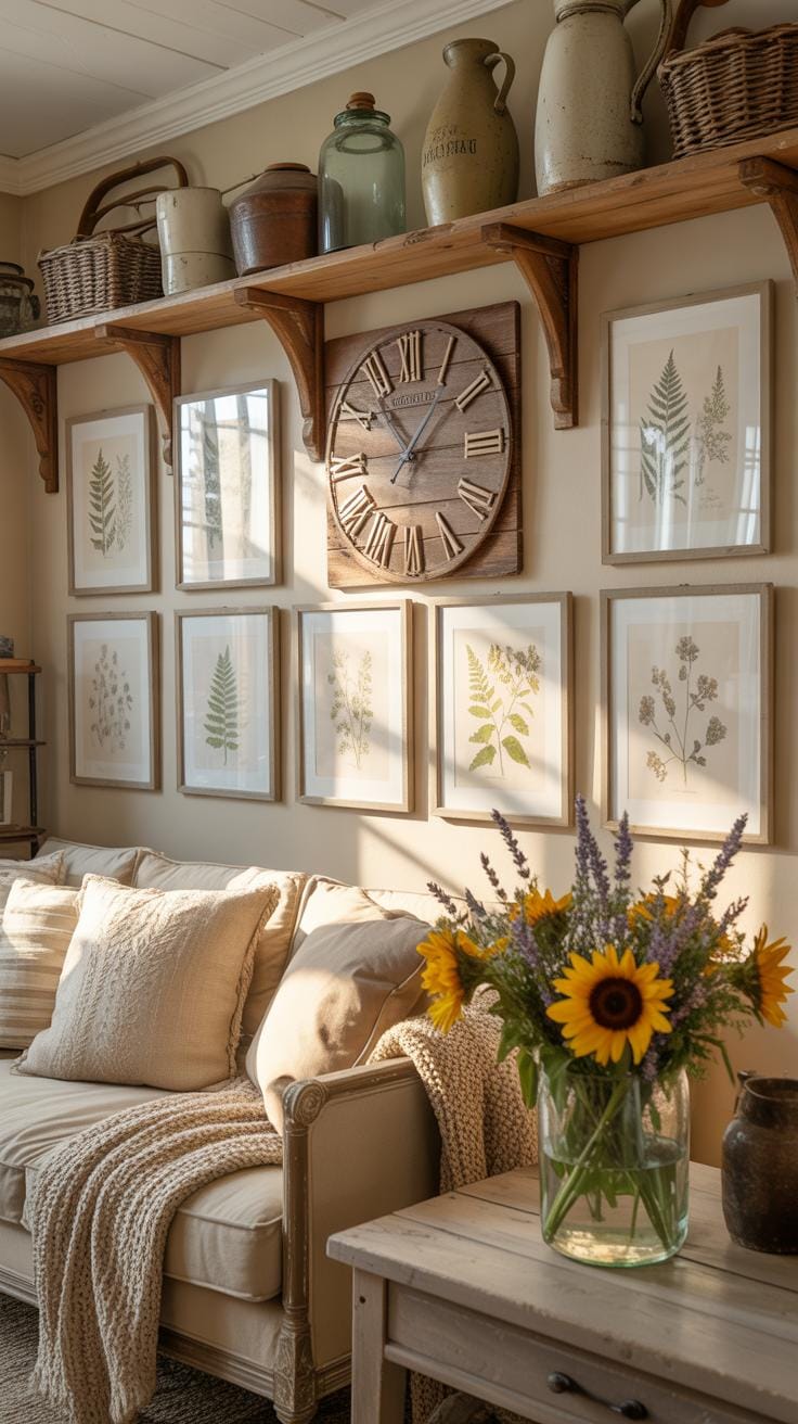 When it comes to dressing the walls in your farmhouse living room, the goal is to enhance that warm, lived-in charm without turning the space chaotic. It’s easy to go overboard with wall decorations, especially since the farmhouse style lends itself to a lot of vintage and rustic pieces. But sometimes, less is more. Maybe you pick one or two focal points that already bring character and then just let the wall breathe around them.