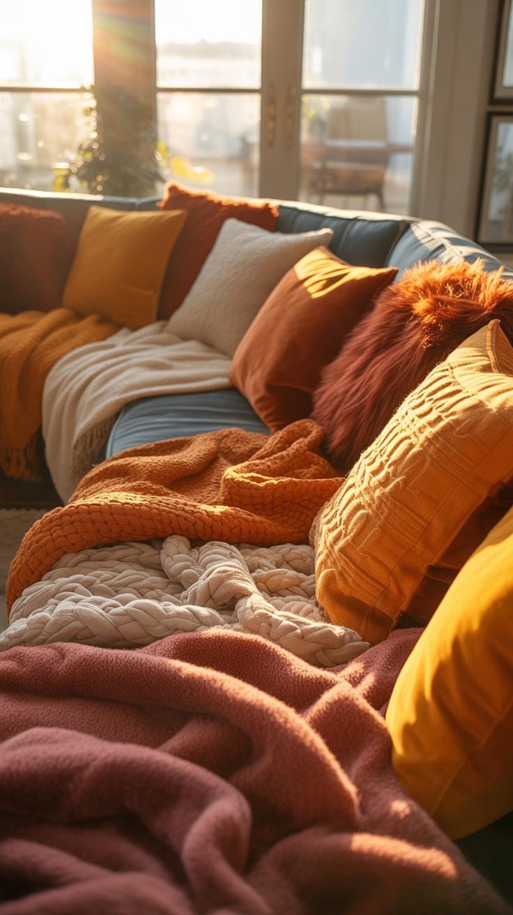 For rugs, natural fibers like jute or wool work well, providing both durability and a cozy surface underfoot. Cushions are your chance to add varied textures—think linen, burlap, or even chunky knit patterns. Curtains often get overlooked, but think about heavier linens or cotton blends, which add to the softness while filtering light warmly.
