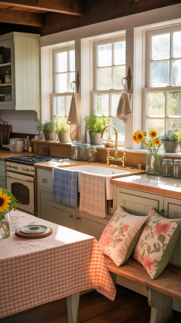 Patterns like gingham, plaid, and stripes have a strong presence in farmhouse decor. Each offers distinct textures and visual interest. Gingham, often seen as checks in bright and white colors, brings a charming simplicity to the room. It’s classic but doesn’t shout for attention, which suits a cozy farmhouse vibe well. Plaid, with its crisscrossed lines and varying color blocks, adds a bit more weight and historical feel.