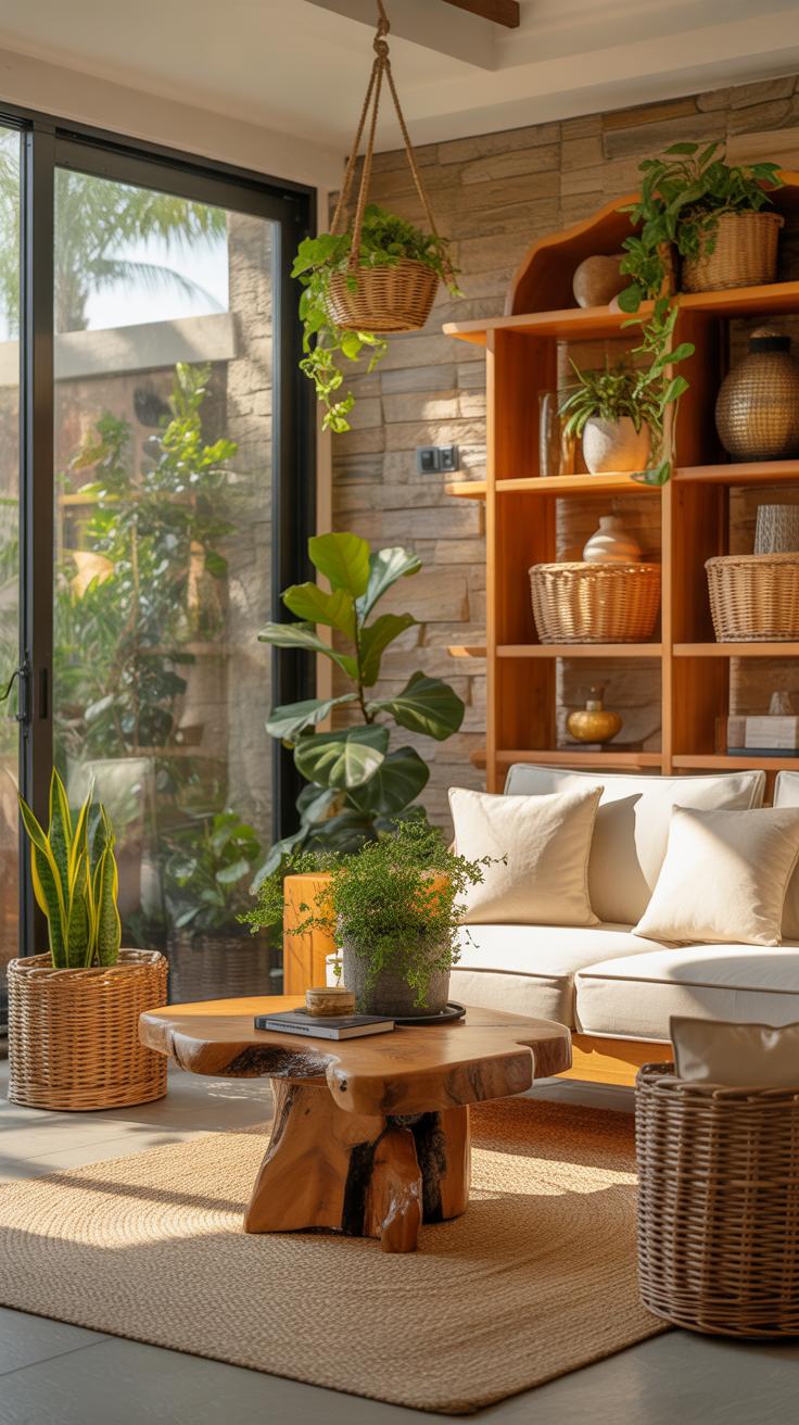 Consider mixing materials, like a wooden coffee table sitting on a woven cotton rug. These contrasts don’t clutter; they lend character. And the arrangement — think about how your eye moves across the room. Natural materials feel best when they flow naturally, rather than being too symmetrical or staged.