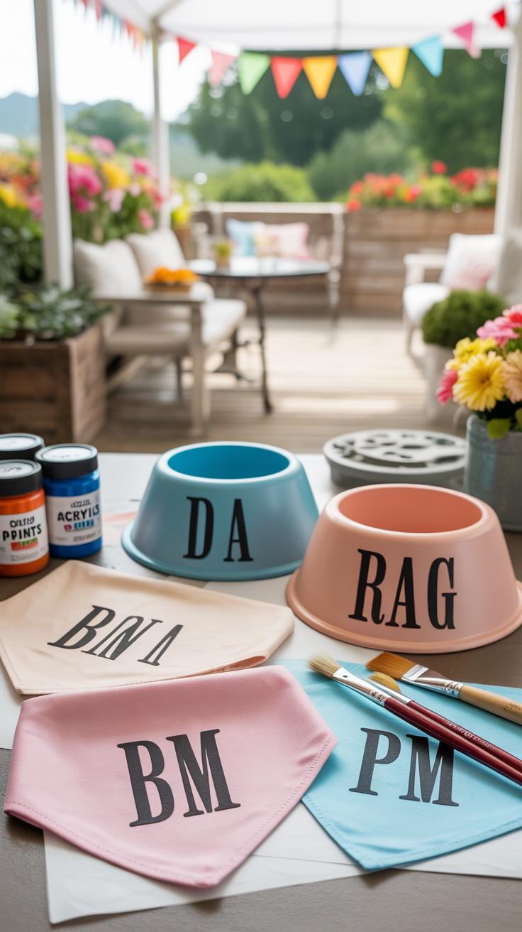 - Using paint to write your dog’s name or a fun phrase directly onto boxes or baskets.