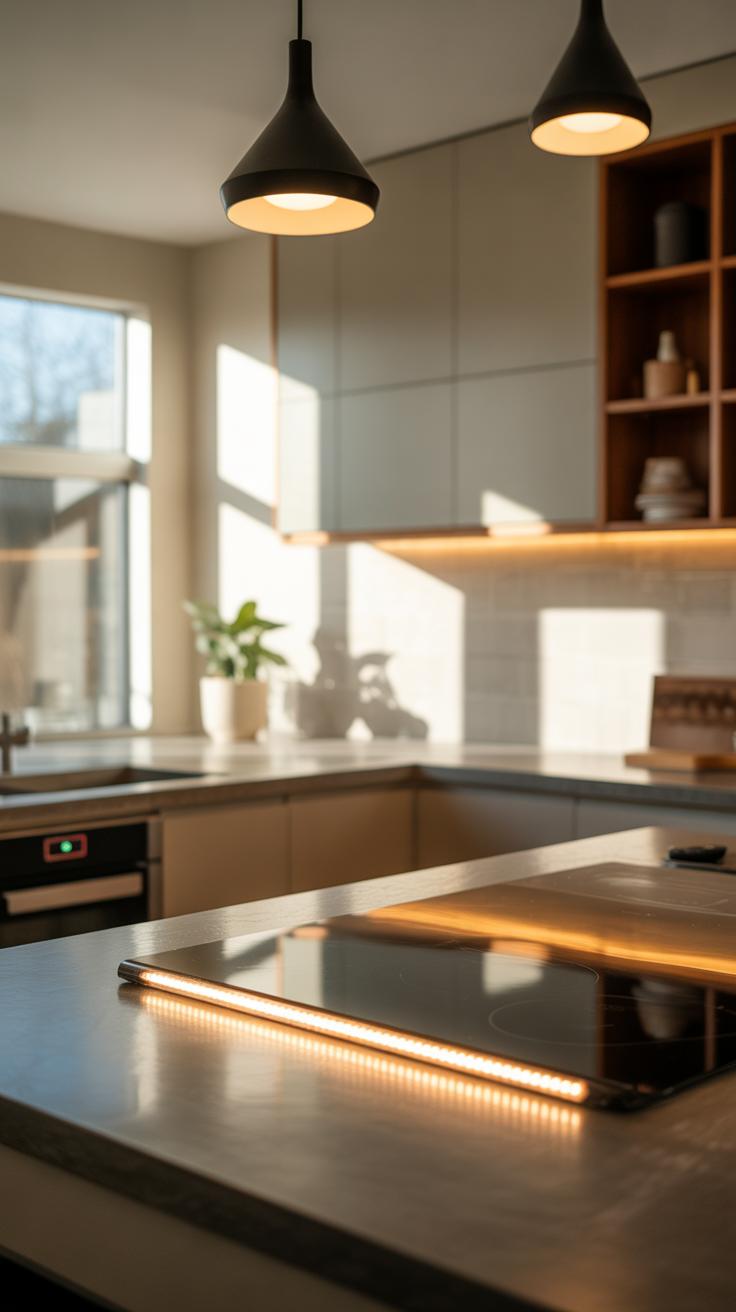 Now for the mood. Harsh overhead lights can feel cold or clinical. A few warm ceiling lights, pendant lamps, or even string lights can soften things up and add personality. Try using warm-toned bulbs rather than daylight ones. They create a gentle glow that makes the kitchen feel comfortable. Think about the vibe you want—relaxed mornings or cozy dinners.
