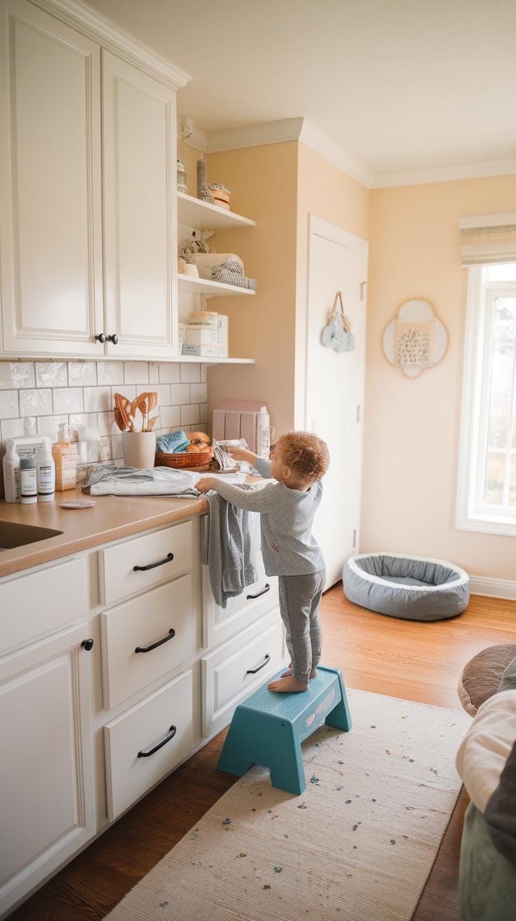 Child-friendly storage is key if you have little ones. Use low shelves or bins where kids can put their laundry or grab their clean clothes. Keep harmful items like detergents up high and out of reach. Ask yourself: How can this room support everyone’s needs and keep things easy for your family?