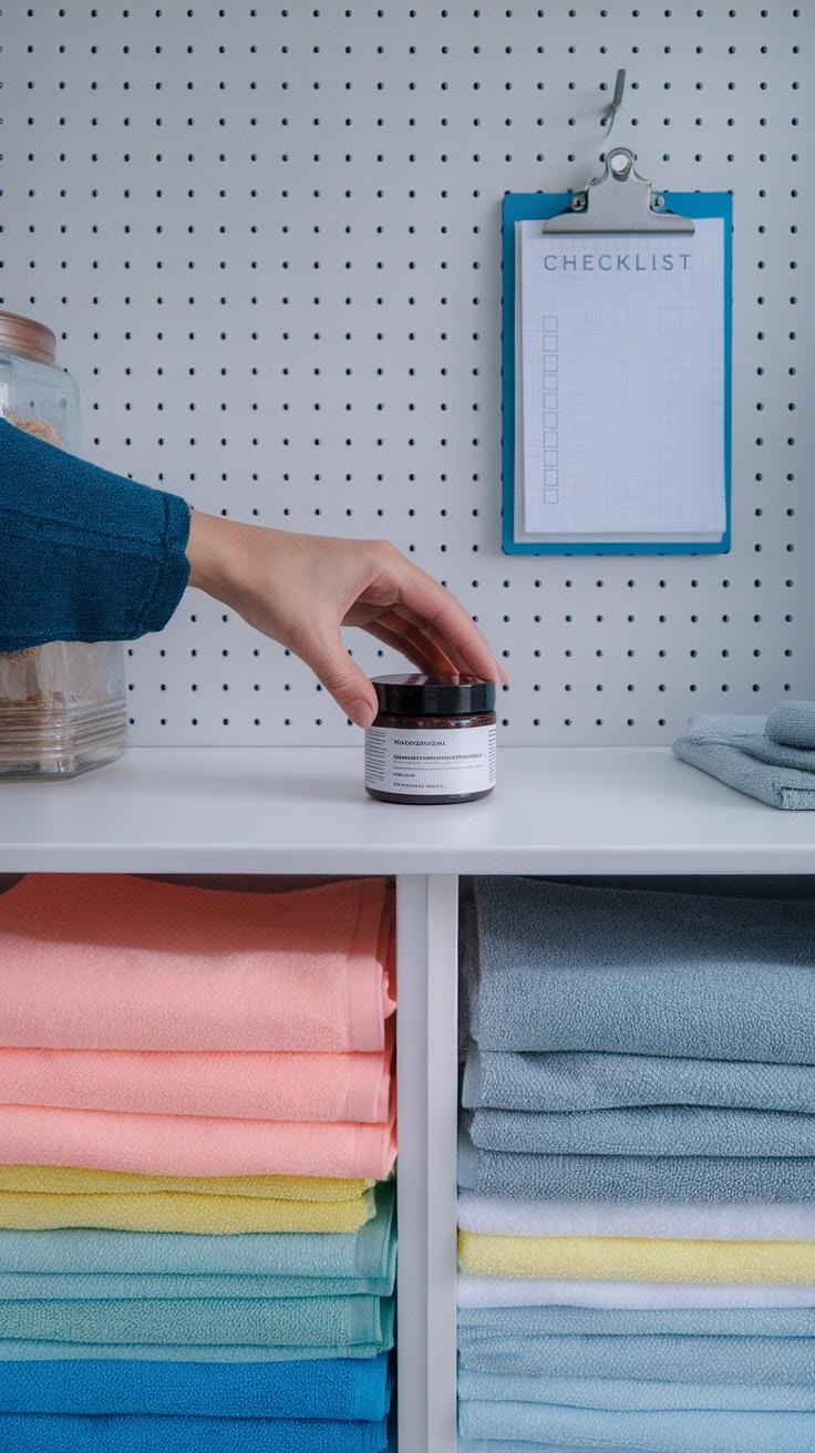 Check your laundry supplies every few months. Toss expired or unused detergents and stain removers to keep shelves tidy. Getting rid of what you don’t need frees room for essentials.