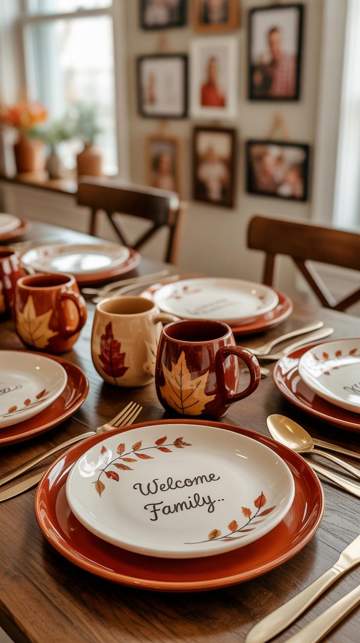 Adding personal touches to your fall table makes the whole gathering feel a bit more special, don’t you think? Simple details like place cards or little name tags don’t just organize seating—they set a warm tone right from the start. You might try crafting these from fallen leaves, small pinecones, or bits of bark. Just write guests’ names with a gold or white pen, and suddenly, your table feels intentional and inviting.