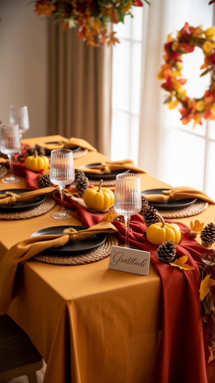 Think about your table’s size first. Leave space—don’t just fill every inch. For example, a small cluster of seasonal elements like mini pumpkins or a simple garland can look lovely without getting in the way. You want to keep the center low and manageable so people can chat without stretching their necks or knocking things over.