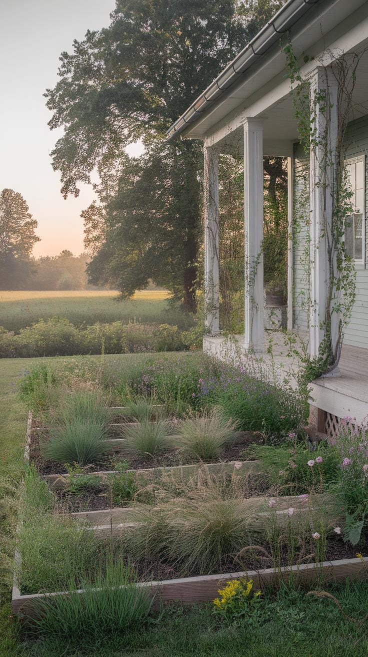 Simple landscaping with native plants keeps your farmhouse exterior connected to its surroundings. When you choose plants that grow naturally in your region, they require less water and care while creating a setting that feels authentic and relaxed. Native grasses, wildflowers, and shrubs add texture without drawing too much attention away from your home’s design. For example, planting goldenrod or coneflowers gives seasonal color without overwhelming the farmhouse charm. The goal is a balanced look where the greenery frames and supports the house rather than competing with it. How might your outdoor space feel if plants grow easily and complement your home’s character instead of cluttering it?