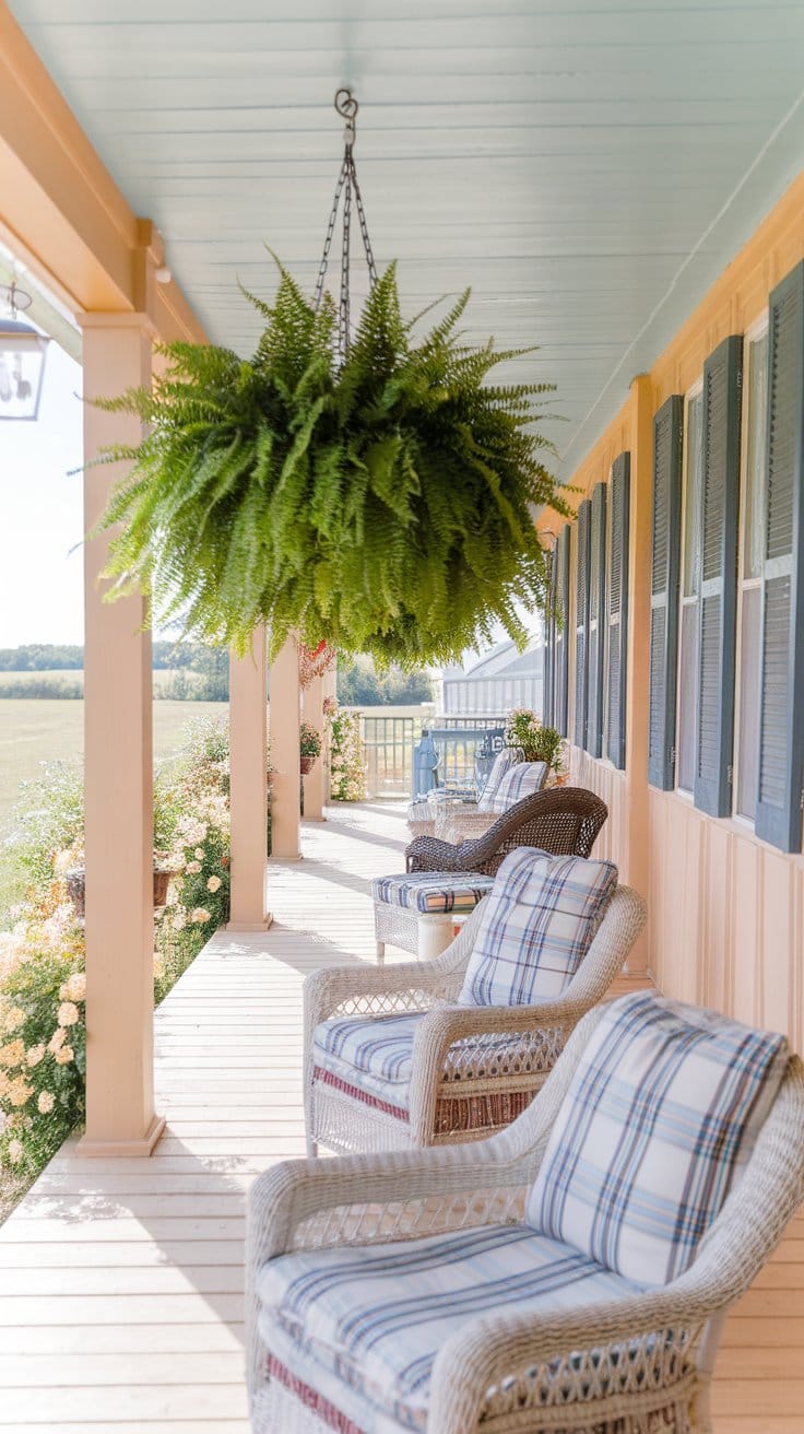 Small touches make your porch feel inviting and personal. Rocking chairs or a wooden swing can add a timeless farmhouse touch while giving you a cozy spot to unwind. Place potted plants or flower boxes around the space to introduce color and life without clutter.