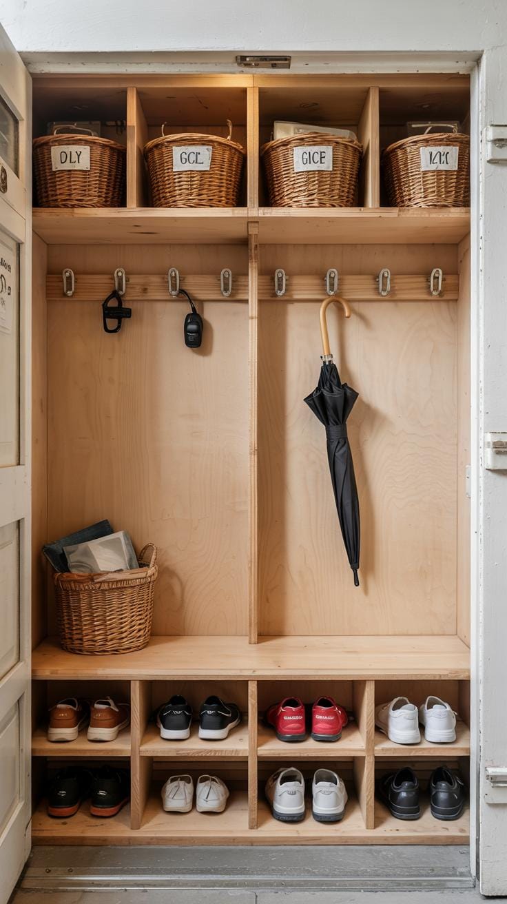 Hooks offer quick spots for coats and bags, preventing them from dropping onto the floor. Install a row near the door for easy reach. Baskets work well for smaller items like gloves, scarves, or mail. Their open design lets you grab what you need fast.