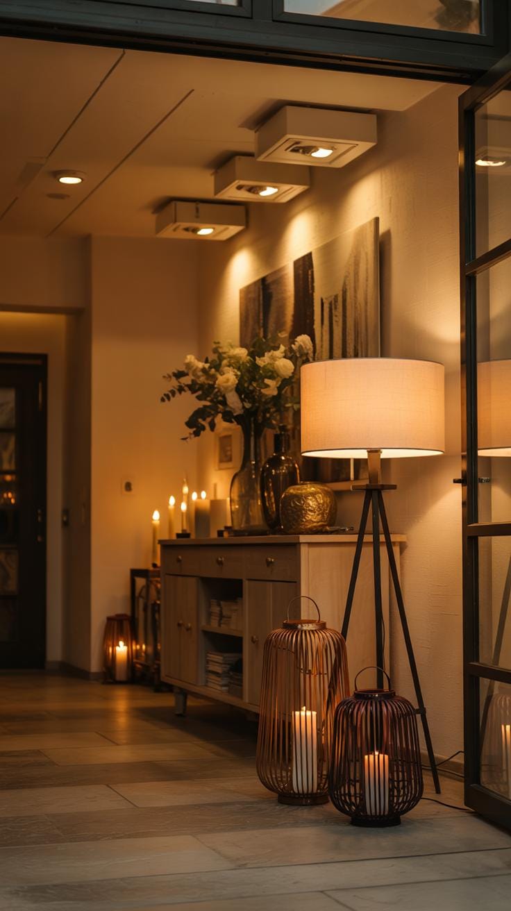 Wall sconces add warmth by casting soft, indirect light. Placing them near mirrors or art brings attention to those areas. Table lamps on a console add another dimension and offer task lighting for setting down items.
