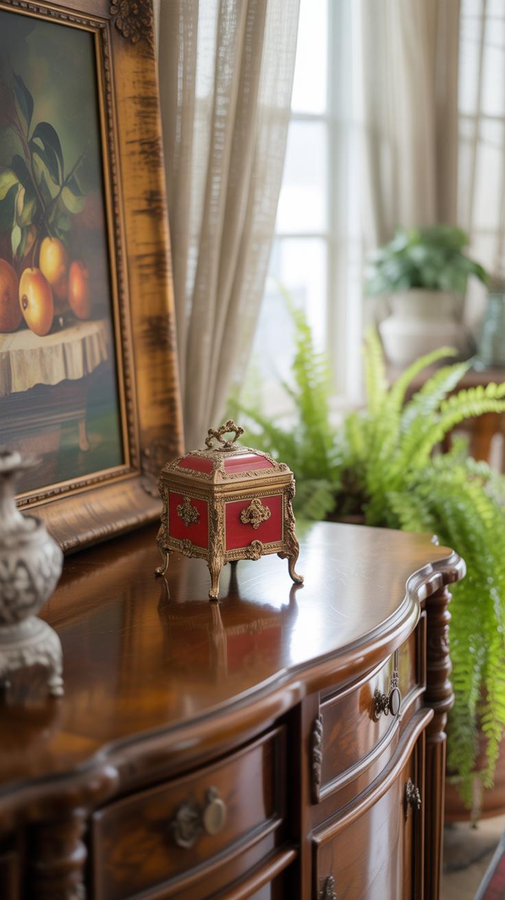 • Choose one or two statement antiques that draw the eye but don’t overcrowd the space.