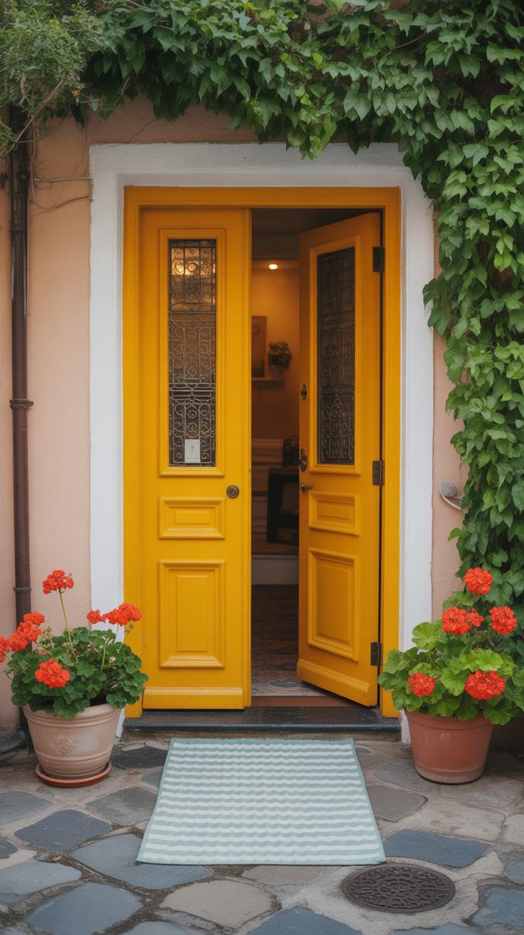 There’s this natural energy yellow doors bring—like a morning sunbeam landing right on your porch. It can make even the dullest exteriors feel welcoming. You might catch yourself smiling when you come home to it, or feeling a bit more upbeat stepping inside. Odd how much color can affect mood—yet yellow seems to do it in a light, easy way without getting over the top.