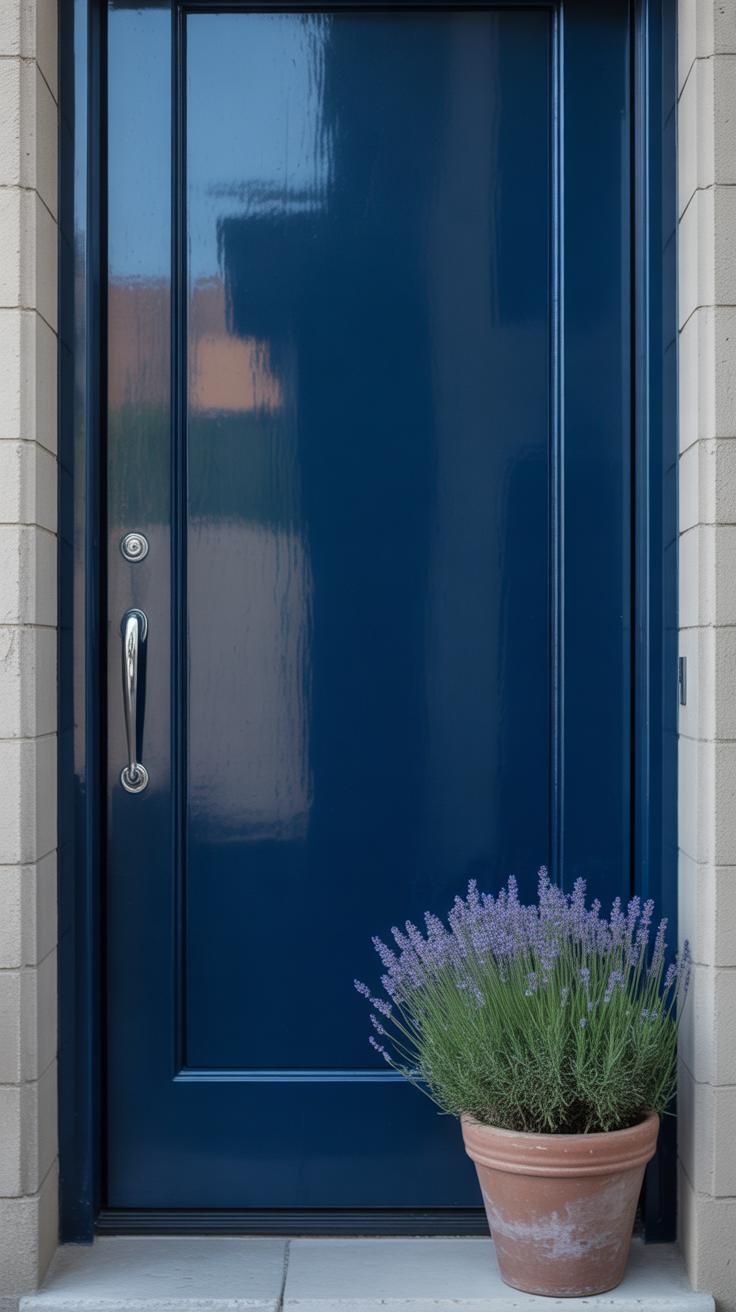 Navy blue is one of those colors that feels both steady and soothing at the same time. There’s something about the depth of this shade that gives a front door a quiet confidence without shouting for attention. It has this timeless appeal—you don’t have to worry it will go out of style soon, which makes it an easy choice if you want your home to feel welcoming yet polished for years to come.