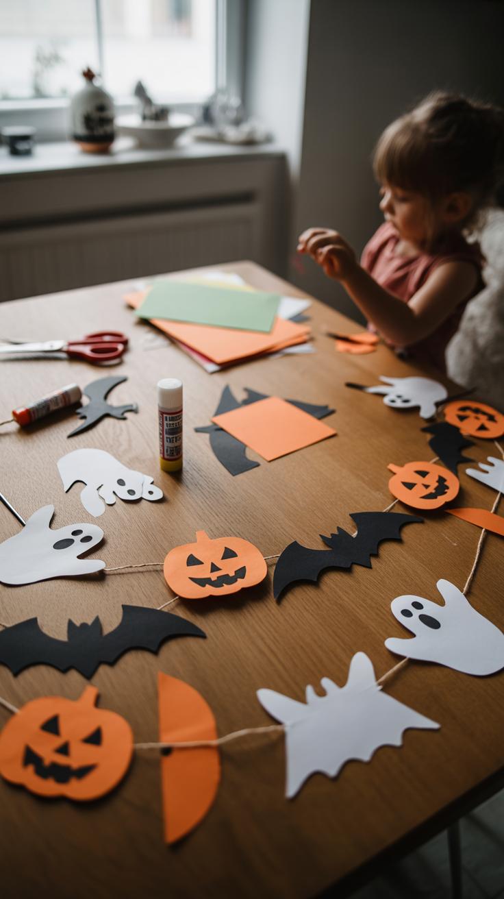 Creating garlands and banners can turn any room into a Halloween haven. Kids can start by cutting out simple shapes—think pumpkins, ghosts, bats—from colored paper or cardstock. It might take a couple of tries to get the shapes just right, but that’s part of the fun. Let them decorate these cut-outs with crayons, markers, or even glitter if you’re feeling brave about the cleanup.