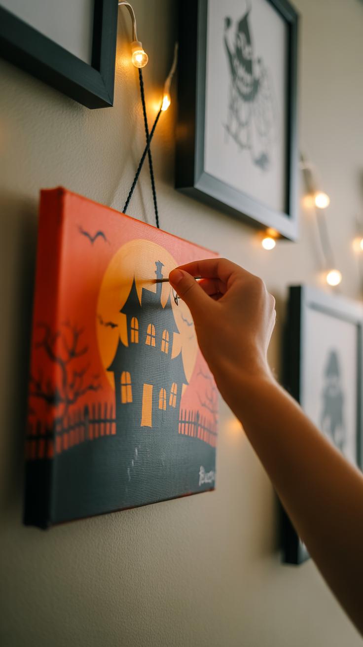 Kids can really have fun crafting their own Halloween-themed wall art to add a spooky touch to their rooms. One simple way is to use canvas boards or thick paper as a base and paint basic but atmospheric Halloween scenes. Think haunted houses with crooked windows, creepy trees, or starry night skies with glowing pumpkins. You don’t need to be an expert—sometimes the rougher, uneven brush strokes make the scene feel creepier, almost like a ghostly image fading in and out.