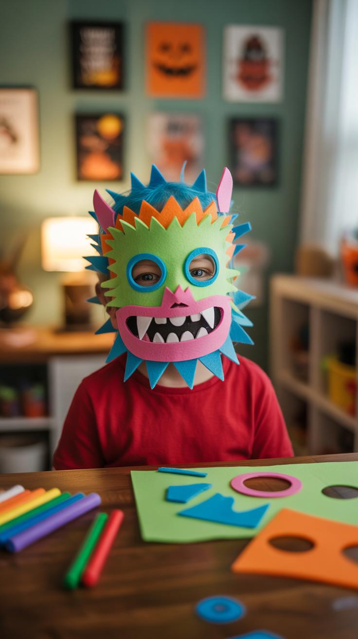 Once the masks are crafted, the real magic begins—using them in role play. Kids can invent stories around their monsters, creating little Halloween tales that twist and turn. You might try acting out a spooky scene together or hold a “monster mask parade” where each child introduces their character and makes monster noises or movements.