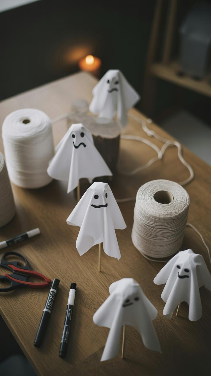 Making ghosts from tissue paper is one of those easy projects that almost anyone can do with stuff lying around the house. Grab some white tissue paper—paper towels work too if you’re out of tissue—and a bit of string or yarn. Wrap the tissue around a small ball, maybe a scrunched-up piece of paper or cotton balls for the ghost’s head, then tie it underneath with the string to form a little ghost shape.