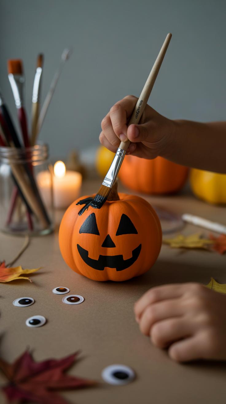 Painting small pumpkins is another fun way to decorate without carving. First, pick smooth pumpkins that are easy to hold. Use non-toxic acrylic paints and a few brushes or sponges. Kids can paint simple designs like polka dots, stripes, or even little spider webs. I remember trying triangle eyes and goofy smiles on mine — messy but joyful. Keep the patterns basic so kids feel successful and don’t get frustrated. Make sure to keep the paints thin and let pumpkins dry flat to avoid smudging. Painting can be messy, yes, but it’s one of those activities that kids often ask to do again. It’s a great alley for them to express themselves without needing perfect skills.