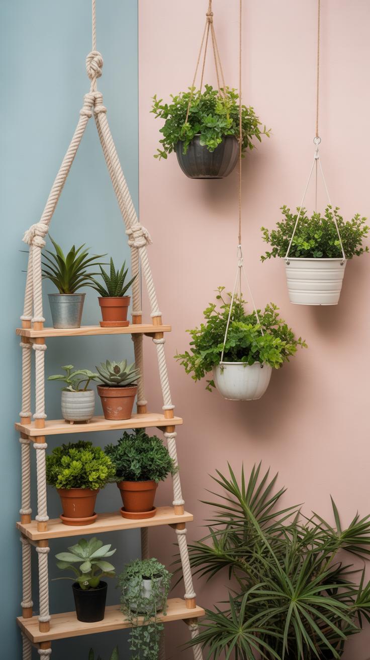 If macramé isn’t your thing, there are other DIY options, like using old scarves, leather strips, or even repurposed fabric scraps to craft plant holders. These add texture and warmth to your space, and the irregular materials sometimes give the whole setup an unexpectedly cozy feel. Have you tried blending different hanging styles? Combining hooks with macramé or fabric holders boosts both style and functionality, though it might get a bit messy visually if overdone.