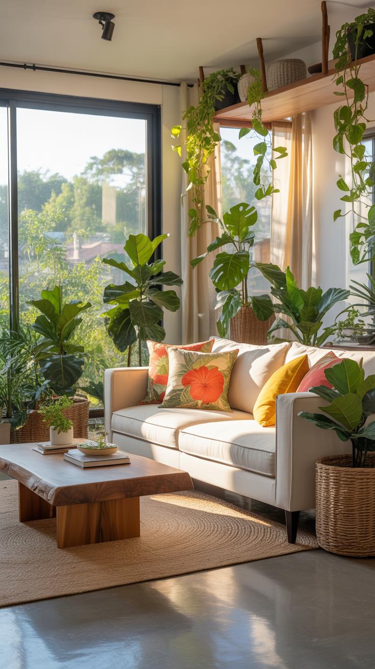 Bringing nature inside your living room is easier than you might think. A few well-placed plants can freshen the air and add a calming vibe. You could start with small pots on shelves or a large leafy plant standing in a corner. Natural elements—like branches, stones, or even driftwood—can be arranged simply on tables or windowsills for subtle texture. Sometimes, a single green touch seems to breathe life into a room. I’ve noticed it makes the space feel less stuffy and more welcoming. But it’s not just about decoration; plants improve air quality and can even boost your mood.