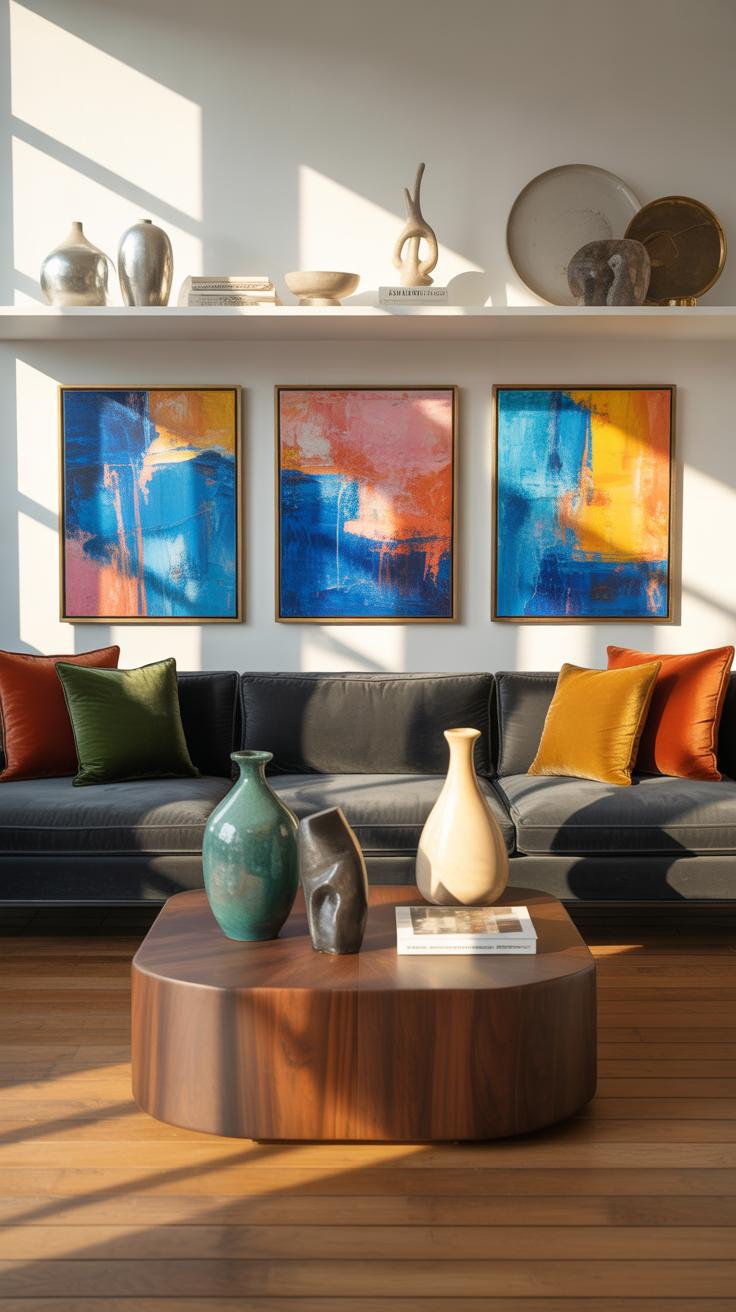 Choosing artwork and accessories for your living room can be quite the balancing act. You want pieces that resonate with your style, yet don’t overwhelm the space. Maybe you’ve stood in front of a blank wall wondering what to hang — I know I have more times than I can count. The trick is understanding the room’s existing colors and themes first. For example, if your walls and furniture lean towards neutral tones, a bold piece with vibrant colors could create a striking contrast without seeming out of place.