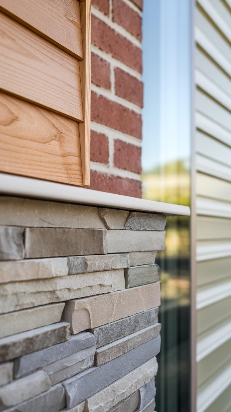 Stone adds a solid, timeless look, holding up well against harsh weather but comes with a higher price and more complex installation. Vinyl is budget-friendly and requires little maintenance, but it may fade under strong sun and can crack in freezing temperatures. Fiber cement balances durability and cost, coping well with moisture and pests, though it can be prone to cracking if not installed correctly.