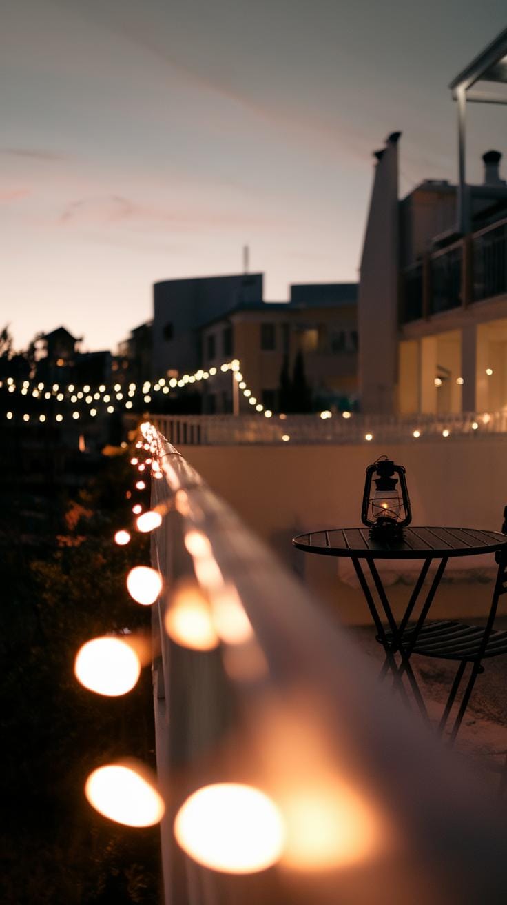 Solar-powered lights charge during daylight, which can save energy and wiring hassle. They work well if your balcony gets enough sun. Using solar lights means no electrical outlets or cords to worry about. Since they run on renewable energy, they reduce your electricity use and make your balcony more eco-friendly. Do you know where the sun hits your balcony most? Placing solar lights there will boost their performance.