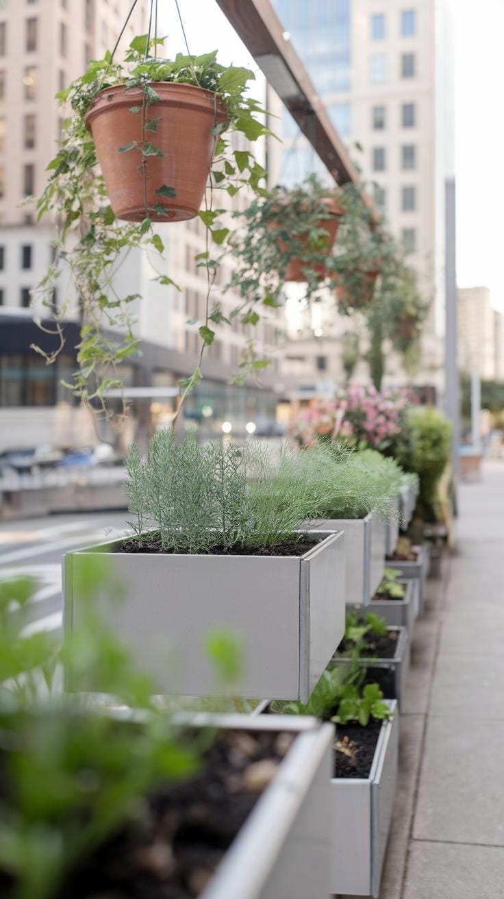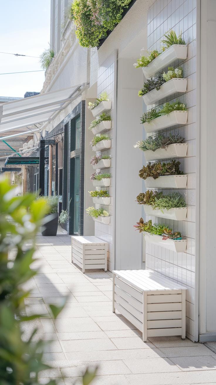 Vertical gardening is a smart way to add greenery while freeing up floor space. Wall-mounted planters or pocket gardens let you grow several plants in an organized, compact way. Rail planters hook onto balcony rails, keeping plants within reach and off the floor. This use of vertical space opens up room for seating or walking.